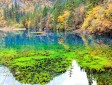 九寨沟风景区:位于四川省阿坝藏族羌族自治州九寨沟县漳扎镇,是白水沟上游白河的支沟,以有九个藏族村寨而得名。九寨沟海拔在2000米以上,遍布原始森林,沟内分布108个湖泊。九寨沟四季景色迷人。动植物资源丰富,种类繁多,原始森林遍布,栖息着大熊猫等十多种稀有和珍贵野生动物。远望雪峰林立,高耸云天,终年白雪皑皑,加上藏家木楼、晾架经幡、栈桥、磨房、传统习俗及神话传说构成的人文景观,被誉为“美丽的童话世界”。九寨沟地处岷山山脉南段尕尔纳峰北麓,是长江水系嘉陵江源头的一条支沟,也是青藏高原向四川盆地过渡的地带,地质结构复杂。这里高差悬殊、气候多样、山明水秀。九寨沟主沟呈“Y”字形,总长50余公里。沟中分布有多处湖泊、瀑布群和钙华滩流等。水是九寨沟景观的主角。碧绿晶莹的溪水好似项链般穿插于森林与浅滩之间。原始森林覆盖了九寨沟一半以上的面积。林中植物种类繁多,现有天然森林近3万公顷,植物2000余种。多种野生动物繁衍栖息于此,其中包括脊椎动物170种、鸟类141种,属国家保护的有17种。林地上积满厚厚的苔藓,散落着鸟兽的羽毛,充满原始森林的风貌,使人仿佛置身于美妙的世外天地。